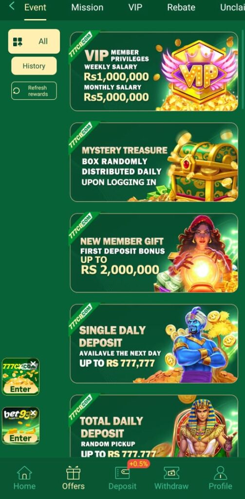The 777CB platform frequently rewards its users with various promotions, such as: