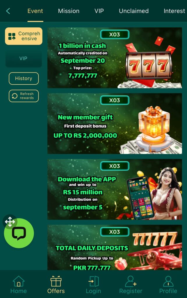 - Bonuses & Promotions Welcome incentives, daily login incentives, and referral incentives.